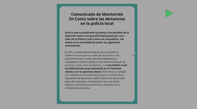 Montornès en Comú emet un comunicat amb relació al cas judicial de la Policia Municipal