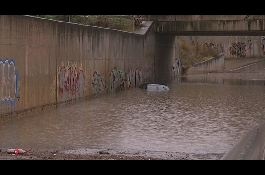 Aquesta imatge correspon a Montornès. Dos cotxes han quedat totalment atrapat a l’aigua sota el pont per on passen les vies del tren. Una situació similar s’ha viscut a Parets, on una dona ha estat rescatada del seu vehicle després d’haver-se quedat bloquejada per l’aigua. Per tal d’evitar aquest i d’altres ensurts, els operaris de Montmeló intentaven millorar el drenatge del clavegueram. La majoria d’incidents s’han concentrat al matí. Abans del migdia, els bombers ja havien fet una desena de sortides a la comarca.