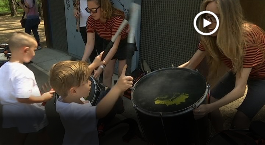 Curiosos i familiars miren com els més petits fan el seu primer pilar ajudats amb un arbre. És el taller dels castellers de Mollet per tal d’engrescar tothom a formar part de la colla. Els castellers són una de les entitats de la ciutat que participen cada any a la trobada de l’entitat Igualem.