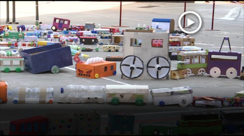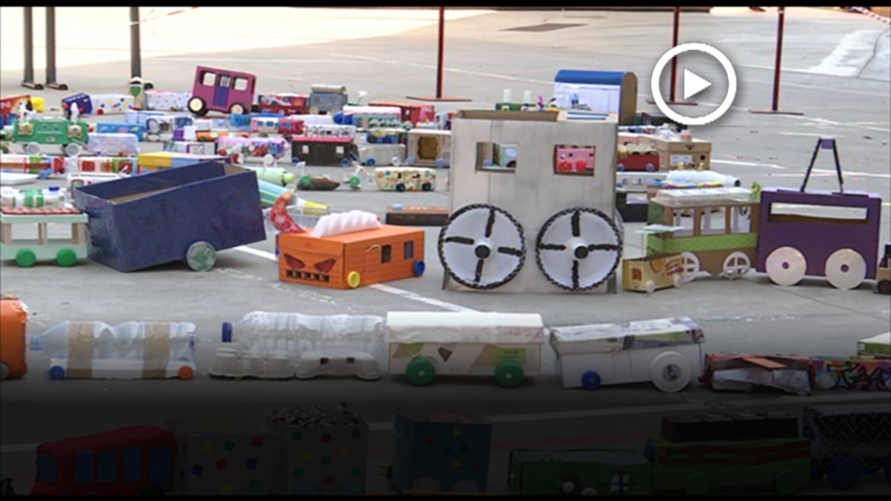 Els alumnes de l’escola Sant Gervasi construeixen un tren amb material reciclat