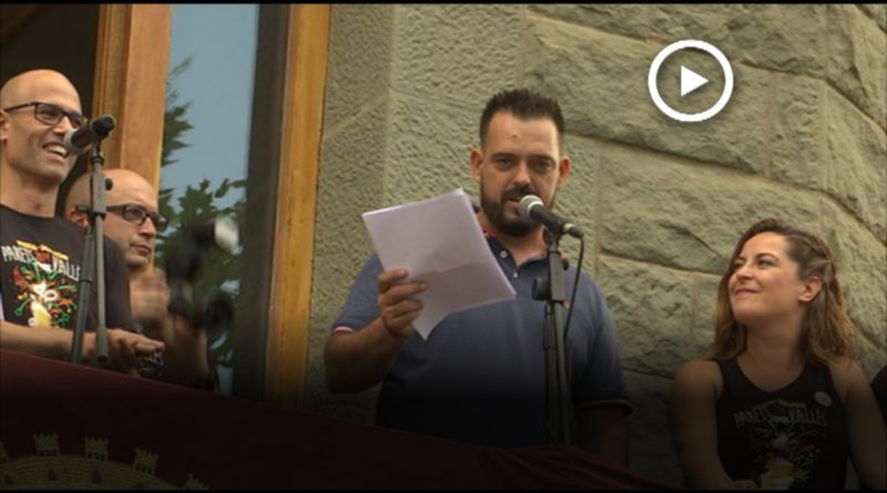 De la mateixa manera que es fa al futbol, alcalde i pregoner s’han intercanviat samarretes. Tot seguit han donat la benvinguda a la Festa Major amb una explosió de confeti.