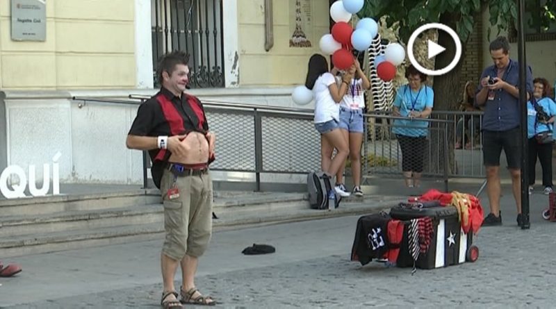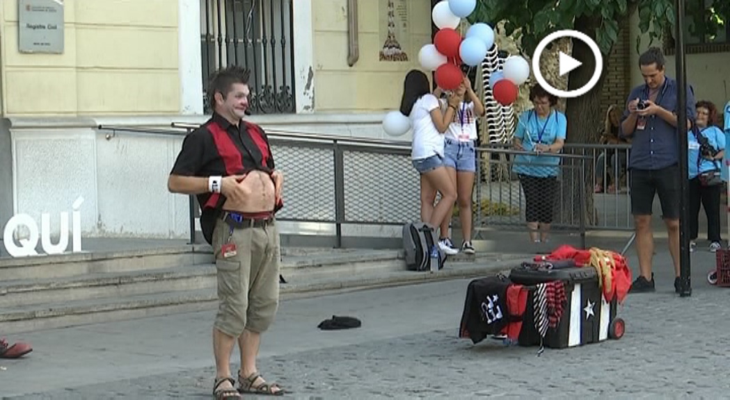 Ell és en Peter Punk, un dels artistes que han passat per aquesta quarta edició del Festival Internacional Arlequí. S’ha encarregat de portar el seu humor irreverent pels carrers de Mollet. La Plaça Prat de la Riba s’ha omplert per gaudir del seu espectacle. A banda d’actuar al carrer, Peter Punk també ha visitat diferents centres socials de la ciutat.