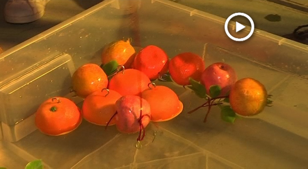 En aquesta piscina hi ha taronges, mitges taronges i altres tipus de fruita. Els paretans han de pescar qualsevol peça, això sí, ha d’estar completa. Es tracta d’una de les activitats de la Fira de l’Amor que busca posar en dubte moltes convencions que hi ha al voltant de l’amor ideal.