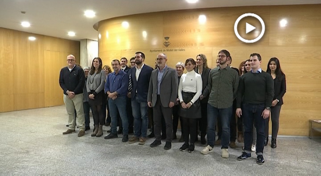 Aquesta imatge escenifica la unitat dins el ple de Mollet per decretar l’emergència climàtica a partir de l’any vinent. Tots els grups amb representació a l’arc municipal han signat un manifest per impulsar polítiques mediambientals.