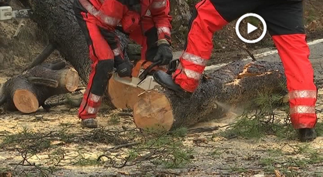 En aquest punt aquest arbre ha provocat destrosses al cablejat elèctric. No ha estat fins que la companyia Endesa ha tallat l’electricitat en aquest punt i ha recollit el cablejat elèctric fins que els bombers han pogut començar a treballar per retirar aquest arbre caigut a la via.