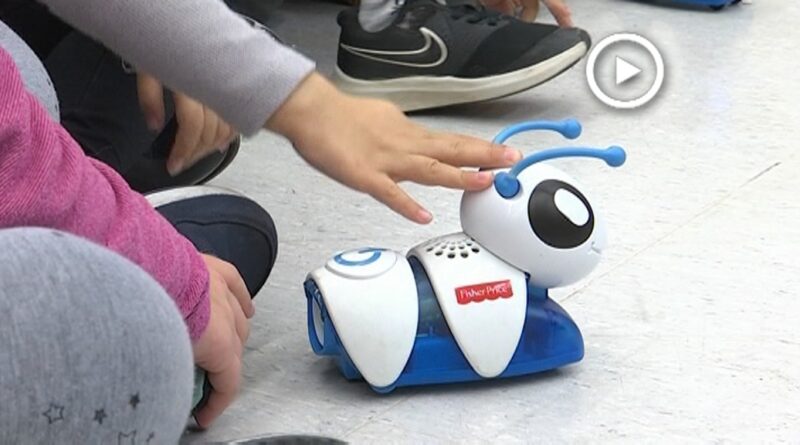 Aquests infants, tot i que ho pugui semblar, no tenen un joguet entre les seves mans. Estan fent una aproximació al món de la programació a través de les erugues robot. Per tal de controlar els moviments dels autòmats, han hagut de combinar diferents blocs i sensors.