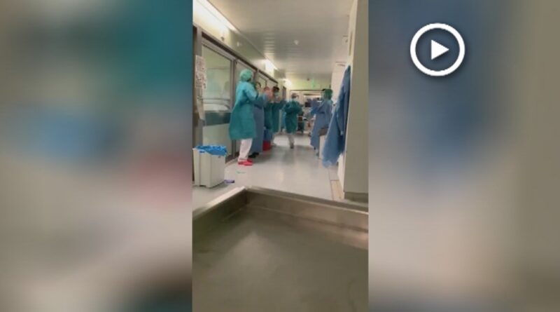 Aquest és el moment de la primera alta de la UCI a l’Hospital de Granollers d’un pacient que estava ingressat amb coronavirus. L’equip mèdic i d’infermers ho celebren amb una ovació. Recordem, que entre d’altres municipis l’hospital de Granollers dona servei a Montornès.