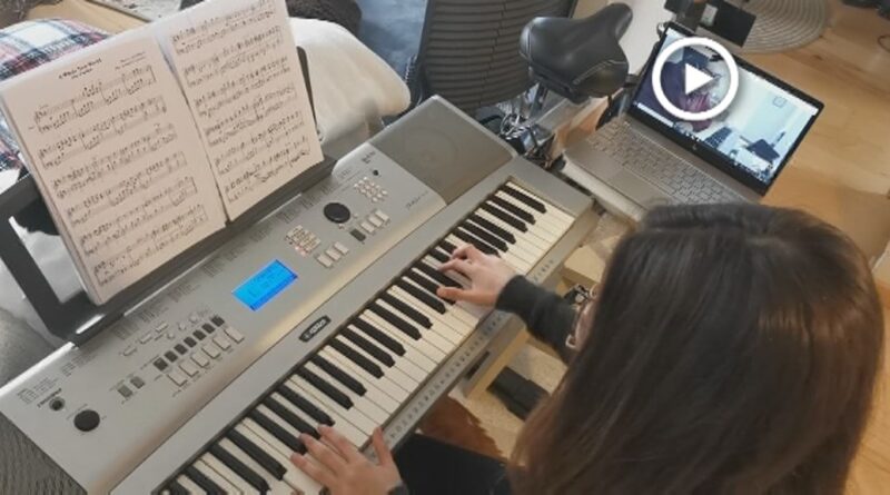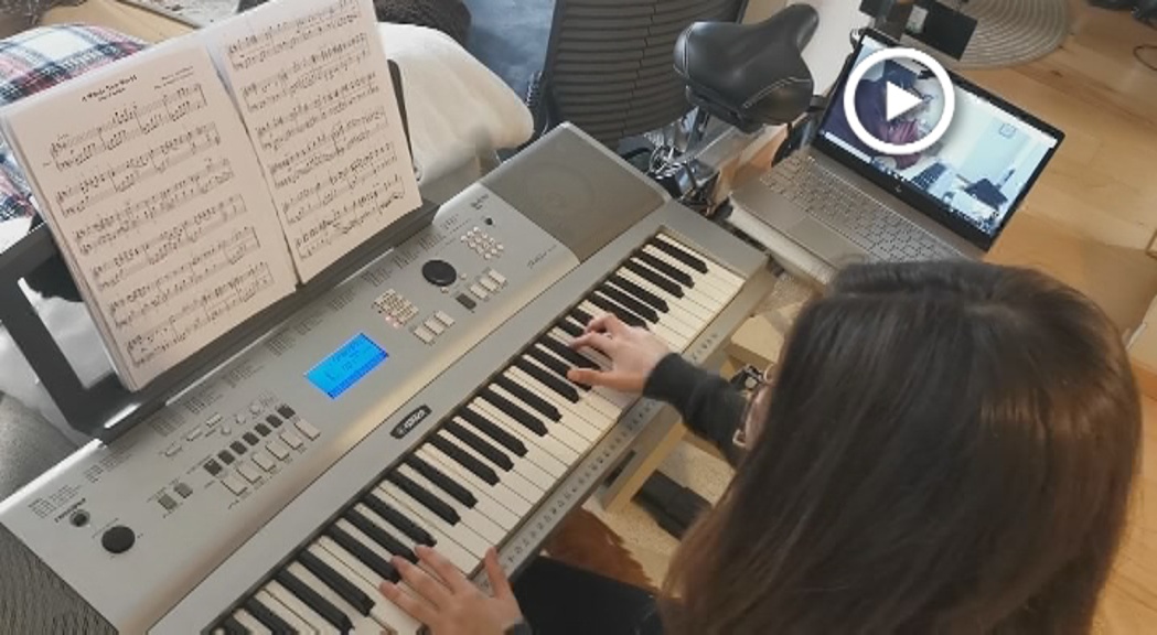 La Paola està tocant la melodia d'”Un món ideal”, de la pel·lícula d’Aladí, durant la seva classe setmanal de piano. Ho fa, però, des de casa i sota l’atenta mirada del Jordi Soler, professor i director de l’escola de música de Montornès. En ple període de confinament, l’escola montornesenca ha intentat mantenir el contacte amb els seus alumnes per tal de continuar la seva formació a distància.