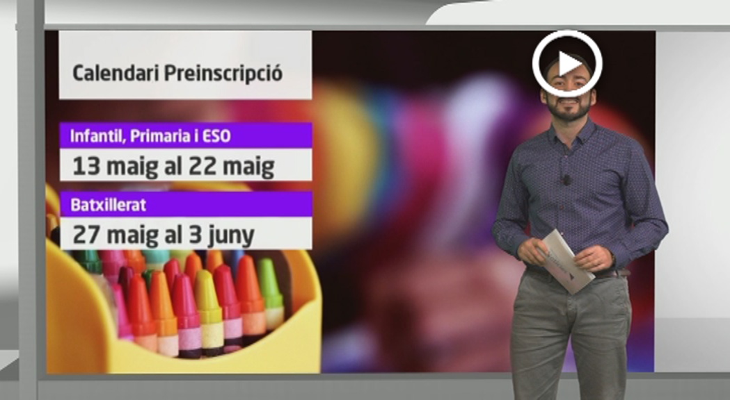 La Generalitat ja ha anunciat el calendari de preinscripcions per al pròxim curs. La preinscripció d’Infantil, Primària i ESO serà entre el 13 i el 22 de maig. Mentre que pels cursos de Batxillerat es durà a terme entre el 27 de maig i el 3 de juny.