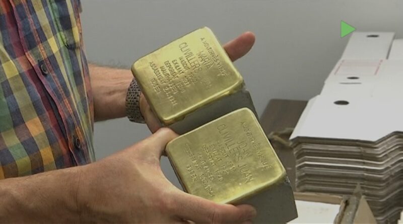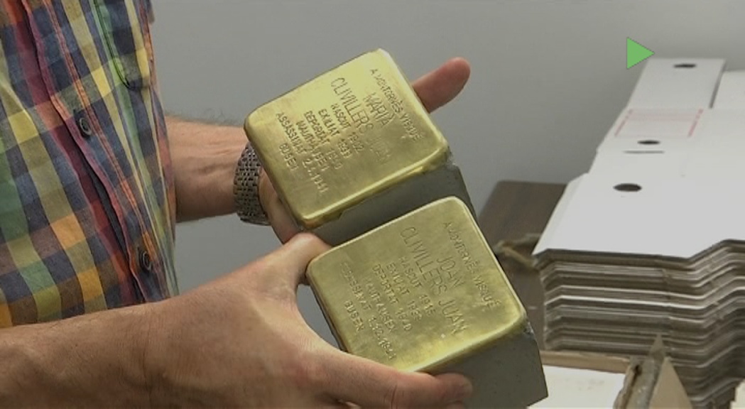 L’arxiver municipal Nicolau Guanyabens de Montornès té a les mans una de les tres plaques que formen part de l’homenatge als tres montornesencs assassinats en els camps nazis. Aquestes plaques han estat fetes per l’artista alemany Gunter Demnig i pertanyen a la campanya ‘Pedres de Topada’. Són unes llambordes fetes de formigó i cobertes d’una fulla de llautó amb les dades gravades de les persones empresonades i deportades.