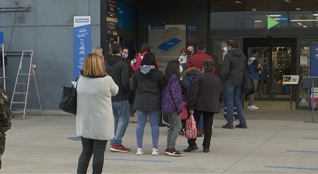 Les cues han estat constants durant tota la tarda per poder accedir a aquest centre comercial, tancat des del passat 7 de gener arran de les restriccions de la pandèmia. Fins a avui, la gent només podia venir a buscar compres online sense accedir al seu interiror. Ara ja es poden fer compres i devolucions dins del recinte. Aquest centre comercial només ha obert 400 metres quadrats de la primera planta, en forma de passadís central.
