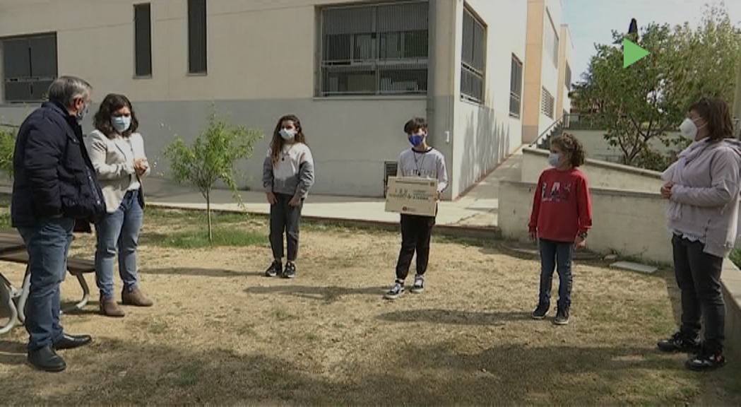 Són els tres portaveus dels grups creats aquest curs dins el programa d’emprenedoria de l’escola Sant Jordi de Montmeló. Ells han estat els encarregats de rebre el reconeixement que ha fet la Diputació de Barcelona al centre educatiu, per la seva participació al projecte CUEME. Aquest programa vol fomentar els valors del cooperativisme entre els infants.