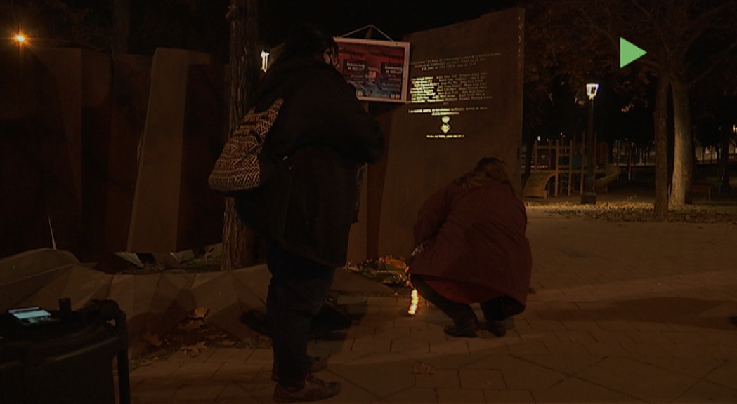 Els participants han fet una ofrena floral i l’encesa d’espelmes en aquest punt de l’entrada del parc de Can Mulà, conegut com els Quatre Cantons, on hi ha el monument en record a les víctimes dels bombardejos de 1938 i 1939 per a l’atac de l’aviació feixista. L’acte també ha comptat amb la lectura d’un manifest i d’un poema amb l’objectiu de recordar les persones que van morir en aquests bombardejos.