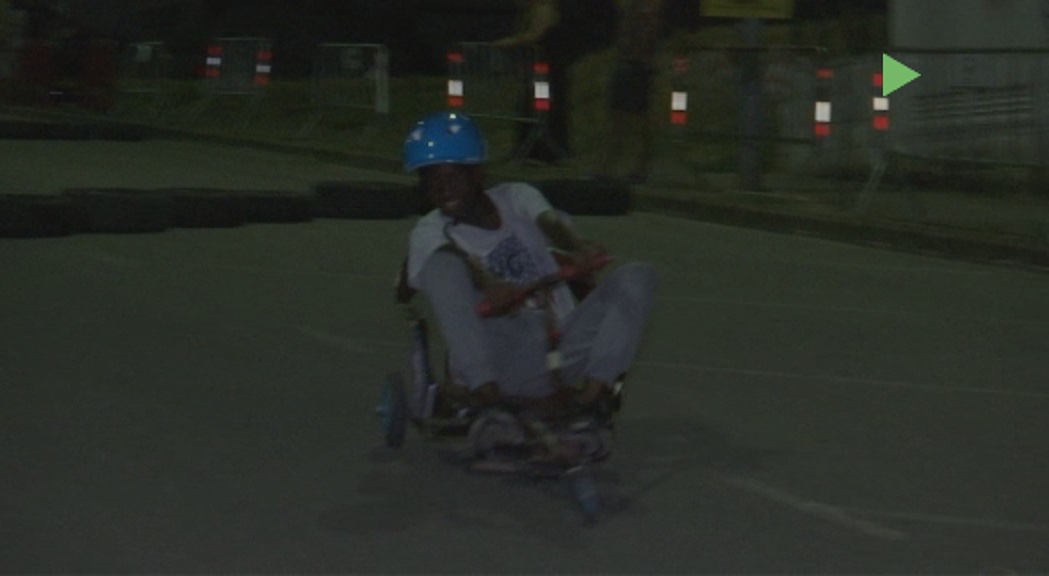 Amb els vehicles a punt i molta concentració, adolescents i joves es preparen per agafar velocitat amb els seus carretons de creació pròpia a la baixada del carrer del Vallès a Montornès Nord.