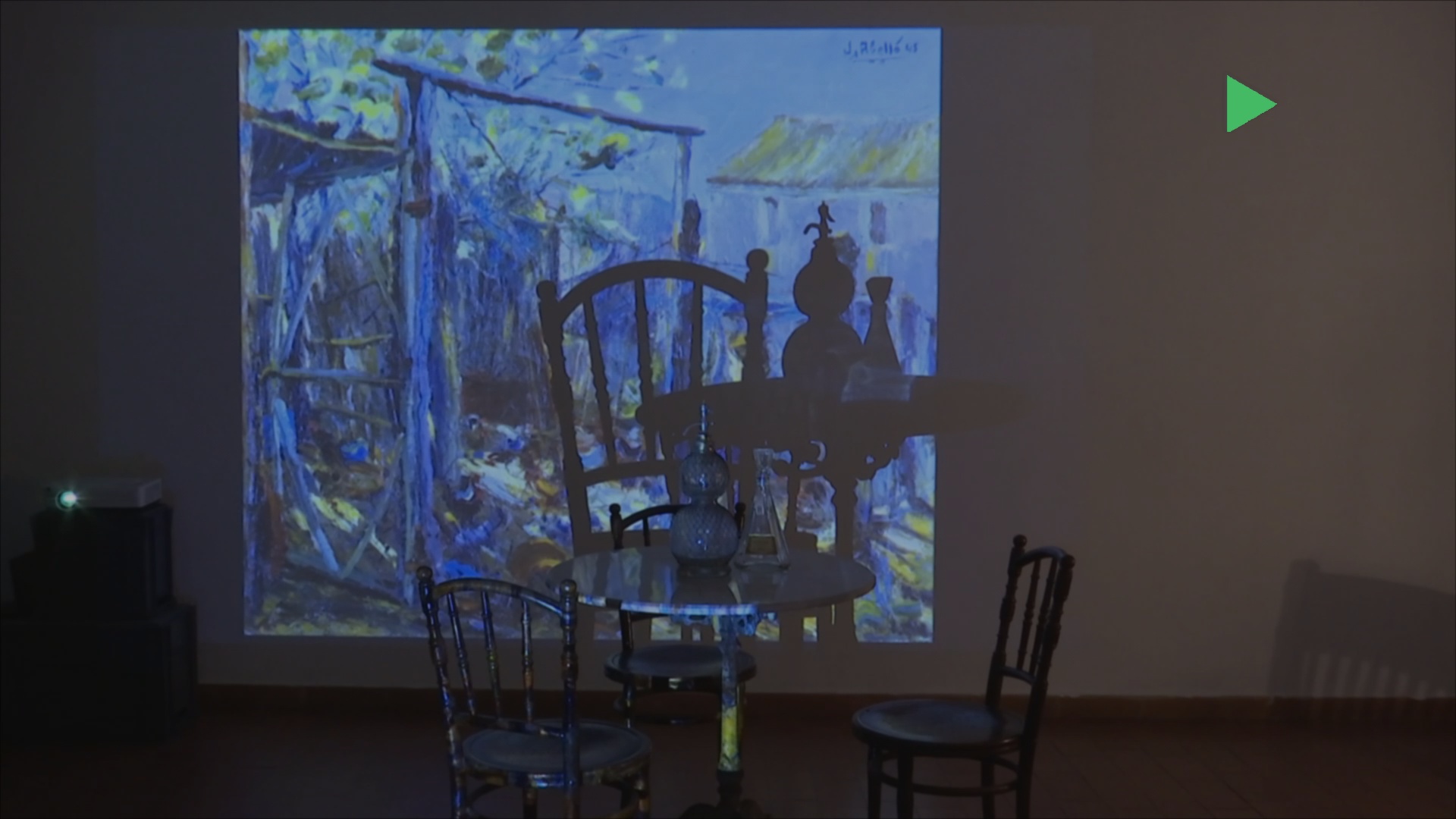 Joan Abelló va treballar a l’hostal de la Marineta com a cambrer, per això l’exposició busca escenificar aquella Marineta dels anys 40, amb mobiliari de l’època i objectes de la mateixa casa del pintor.
