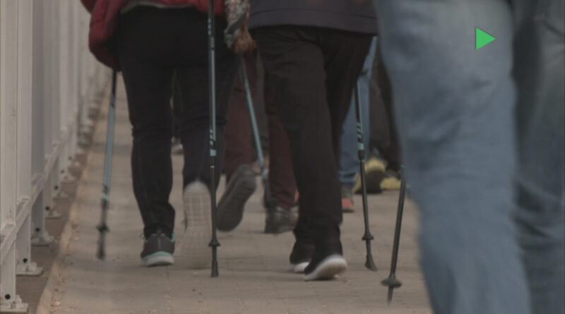 Abans de començar la caminada, d’uns 8 kilòmetres, s’ha fet un escalfament previ, amb els bastons per fer marxa nòrdica. La majoria de participants han optat per aquesta modalitat. Malgrat ser una caminada adreçada a la gent gran, tothom hi té cabuda.