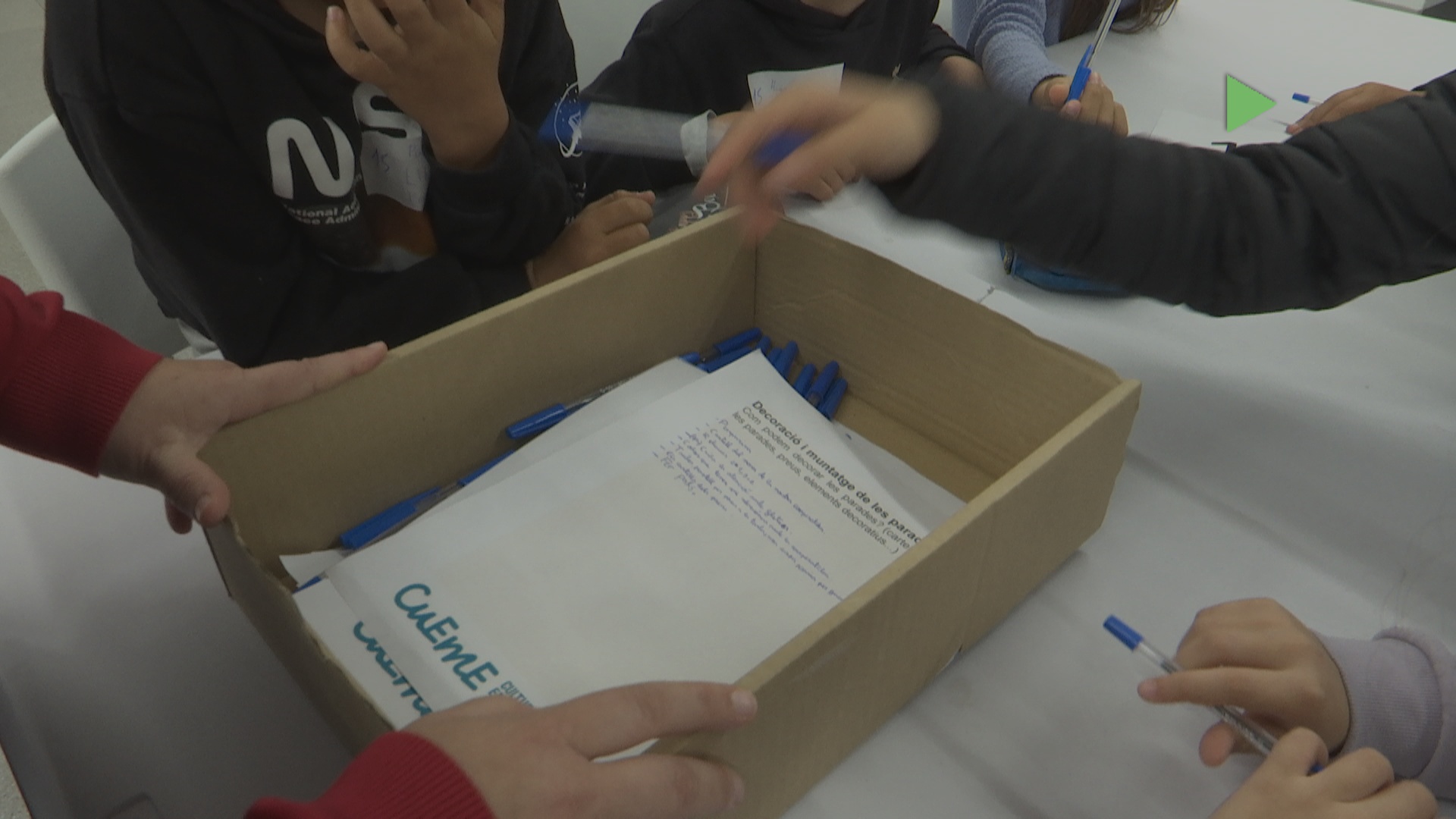 Cada any, les cooperatives s’havien d’inscriure al registre municipal, i era un tràmit més. Aquest cop, però, li han volgut donar més importància amb una trobada al teatre Margarida Xirgu entre les tres escoles del municipi que participen en el programa CUEME. Les tres cooperatives han explicat cadascuna el seu projecte als companys, i han compartit el procés de treball. De fet, també han hagut de fer feina. Després d’explicar els seus projectes, han agafat paper i bolígraf per treballar de manera conjunta la preparació del dia que posaran a la venda els productes, que serà el 9 de juny. Un projecte que permet treballar moltes competències alhora.