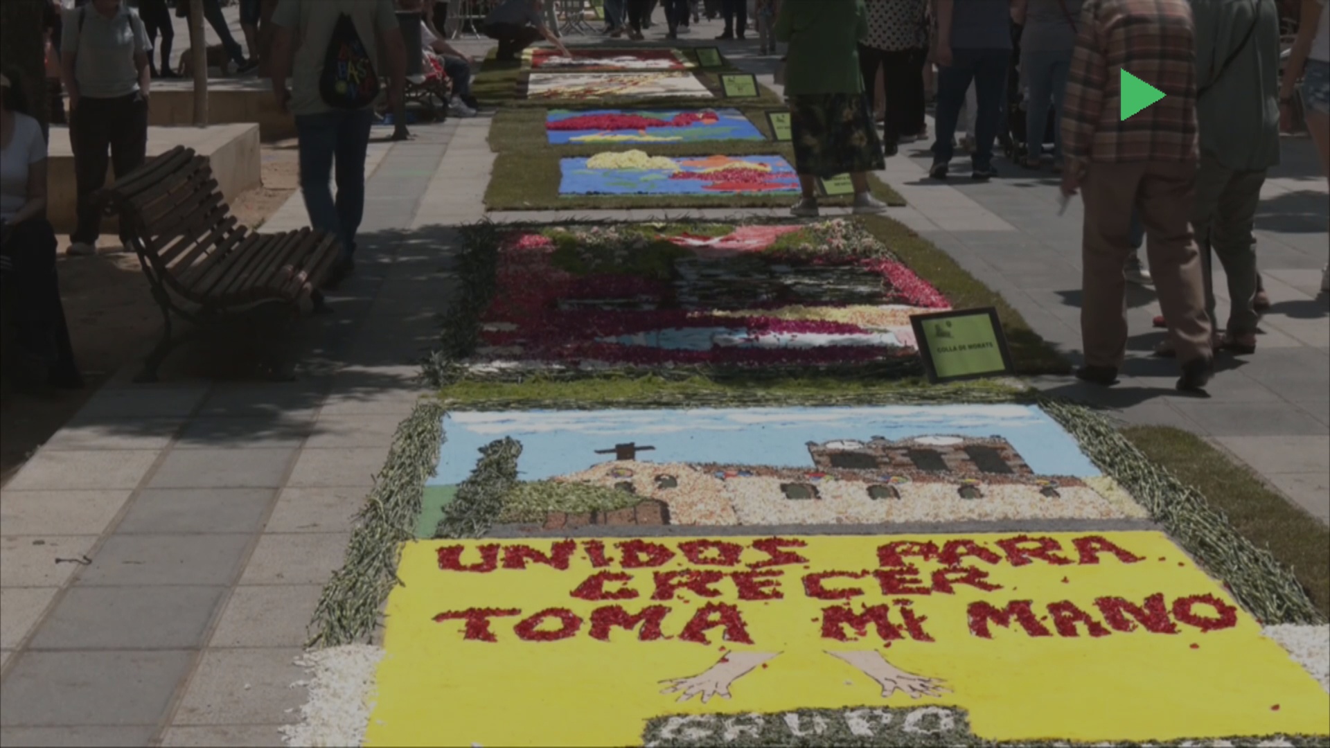 Aquest any diferents entitats de la ciutat han participat, i en total s’han pogut veure una desena de catifes. I entre les creacions, no ha faltat una amb motiu del centenari del naixement de Joan Abelló. El que tenen en comú totes les catifes, però, és que hi ha molta feina per fer-les.
