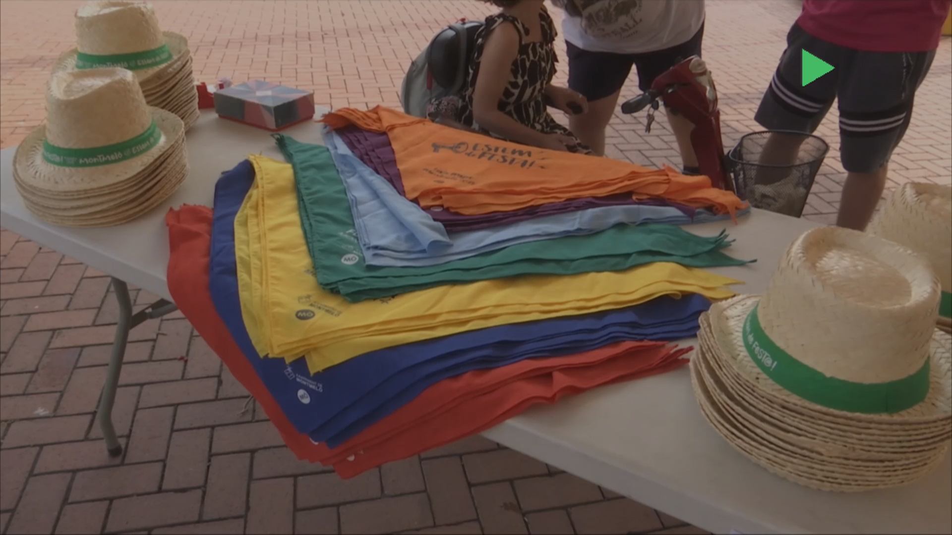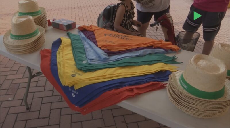 Mocadors, gots, barrets i, com a novetat aquest any, s’ha incorporat el ventall per poder combatre la calor. És el primer any que els membres del Trencadís s’han encarregat de vendre els productes de la Festa Major i ha estat tot un èxit.