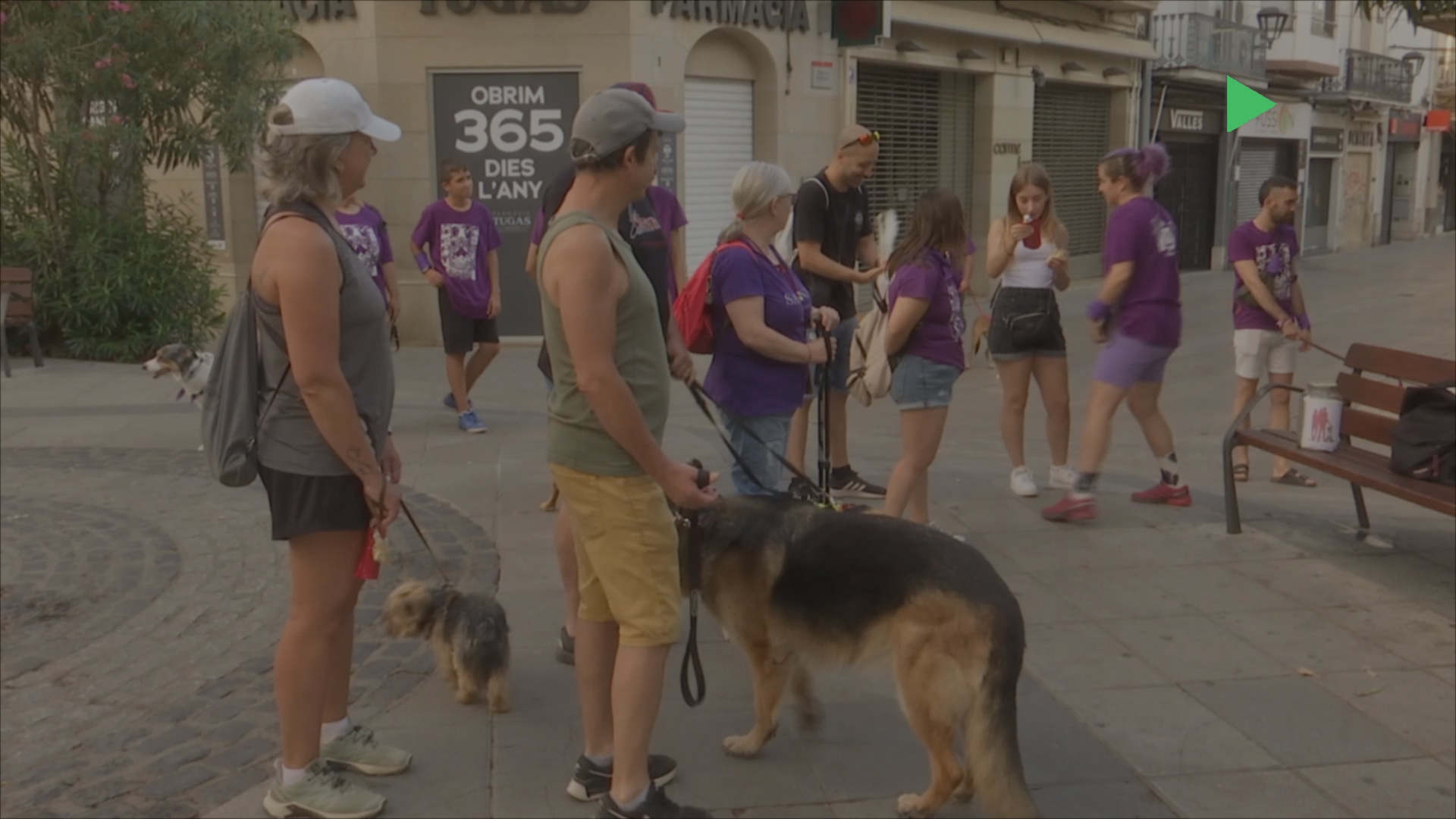 Unes 40 persones i 20 gossos participen en la passejada solidària de gossos de la colla Morada