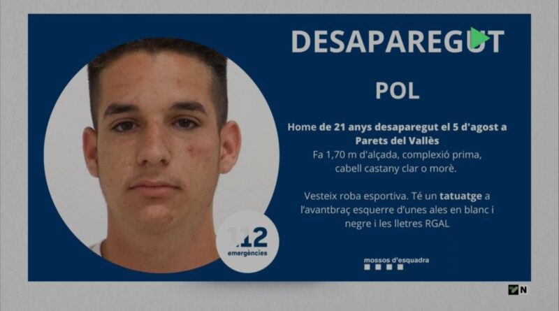 Els Mossos d’esquadra han fet una crida a través de les xarxes socials per trobar al Pol, un noi de 21 anys desaparegut el 5 d’agost a Parets del Vallès. El jove fa 1 metre i 70 centímetres d’alçada, és de complexió prima i el cabell castany clar o morè.