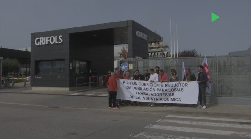El Sindicat de Treballadors ha fet avui una concentració a l’entrada de Grifols per exigir que s’avanci la jubilació dels treballadors de la indústria petroquímica, tal com s’ha fet en altres sectors.