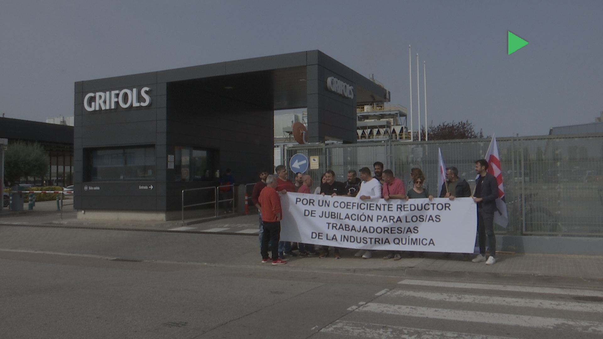 El Sindicat de Treballadors ha fet avui una concentració a l’entrada de Grifols per exigir que s’avanci la jubilació dels treballadors de la indústria petroquímica, tal com s’ha fet en altres sectors.