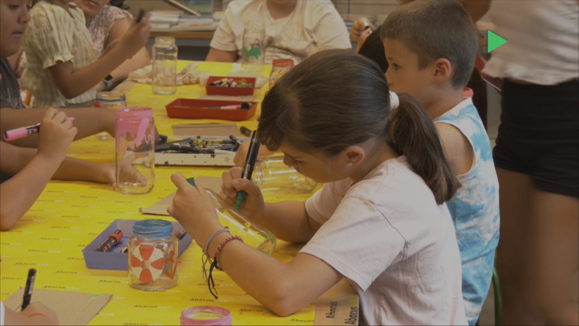 Els més petits, però també les seves famílies, han mostrat la seva creativitat amb la pintura. Ho han fet amb un taller per crear porta-espelmes. Una proposta que ha permès que els més petits transformin pots de vidre, a través de la seva creativitat, amb diferents materials com els retoladors acrílics. L’objectiu és que aquests portaespelmes il·luminin les nits d’estiu.