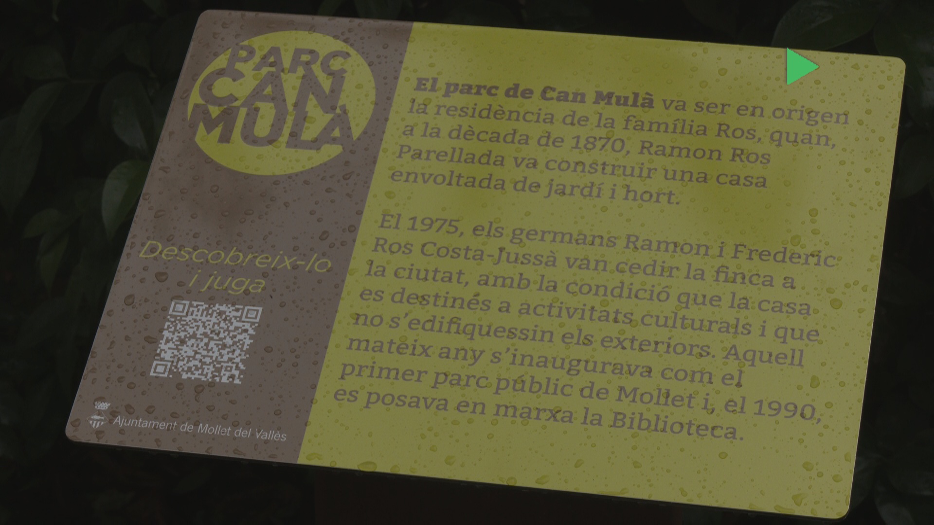 L’Ajuntament de Mollet presenta un nou joc de pistes a l’estil d’un scape room de carrer. Només acostant el mòbil a un codi QR ubicat al Parc de Can Mulà, tothom pot accedir al joc interactiu ‘Can Mulà i el secret de Mollet‘. Un nou joc de pistes amb quinze enigmes escampats per tot el parc. La finalitat d’aquest joc, adreçat a tots els públics, és descobrir la història de la ciutat a partir d’un espai que conté molts elements patrimonials.