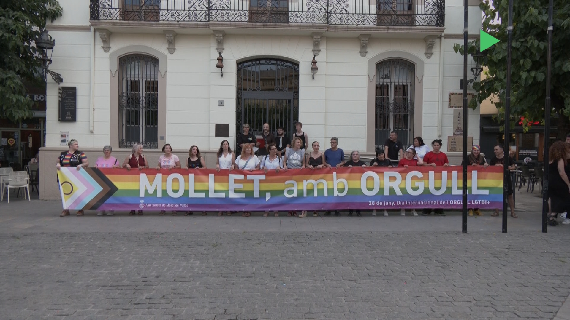 Amb motiu del Dia Internacional de l’Orgull LGTBI+, que se celebra cada 28 de juny, l’Ajuntament de Mollet ha organitzat diversos actes per reafirmar el seu compromís amb els drets, les llibertats i la visibilitat del col·lectiu LGTBI+. El primer dels actes va arrencar amb la col·locació d’una gran pancarta amb els colors de la bandera irisada a la façana de l’Ajuntament Antic, a la plaça Prat de la Riba. Un gest simbòlic amb què el consistori ha volgut mostrar, un any més, la seva adhesió a la lluita per la igualtat i el respecte a la diversitat. Com és tradició, es va fer la lectura del manifest institucional, enguany amb la participació de l’associació Stonewall, entitat que treballa per la defensa dels drets LGTBI+.
